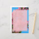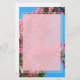 Jolie papeterie estivale avec fleur d'arbre rose et ciel bleu.