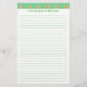 La peinture d'un motif de fleurs marguerites jaunes sur un arrière - plan vert clair, est imprimée sur le dessus de la papeterie personnalisée. Un espace réservé se trouve ci-dessous pour ajouter votre message personnalisé. Le corps est doublé pour une écriture facile. C'est un design amusant pour le printemps.