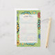 Papier à lettres personnalisées mignonnes avec fleurs bleues, jaunes et pêche dessinées à la main sur un arrière - plan vert clair. Le texte, la police, la taille de police, la couleur et le placement sont entièrement personnalisables.