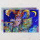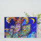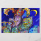 Couleur colorée, capricieuse et éclatante aquarelle en rouge, bleu, vert, jaune or, rose, fuchsia couleurs inspirées du Carnaval de Venise et Commedia dell'Arte. Joueur de flûte expressif dans la nuit, lumière lune et un chat bleu.Ce design cool et artistique est aussi un cadeau magnifique pour les occasions spéciales, anniversaires, mariages, noël, vacances, mardi gras, saison carnavalesque.