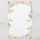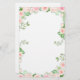 Un beau stationnaire girly et romantique avec des peintures des roses roses et du feuille vert autour du papier comme frontière mignonne.