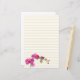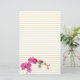 Une lettre de papeterie recouverte d'un jaune floral écrivant papier fuchsia orchidée rose avec quelques fleurs en pleine floraison et d'autres bourgeonnant peint à la main avec de l'aquarelle. Beau papier pour l'écriture de lettres, la journalisation, et plus.