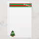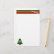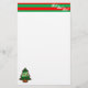 Papier de papeterie festive avec rayures vertes et rouges et design d'arbre de Noël pour ces lettres d'information annuelles de Noël (voir enveloppes et timbres correspondants)