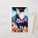 avec design original de peinture aquarelle de Geisha japonais en bleu foncé complexe orange kimono avec arrière - plan bleu ciel. Lumineuse et colorée, inspirée de l'art oriental et asiatique, cette belle dame vient de la région japonaise de Kyoto.