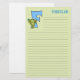 Papeterie doublée pour les enfants dans un arrière - plan plaid vert défraîchi, des lignes à écrire et une grenouille mignonne avec la lettre F pour le monogramme du garçon.