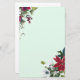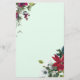 Des images de poinsettia rouge vif sont associées à des aiguilles à feuillage persistant et des fleurs blanches pour former un décor de coin haut et bas sur ce joli papier à lettres de la saison des Fêtes. L'arrière - plan est teint d'un vert de Noël très pâle. Parfait pour cette correspondance saisonnière !