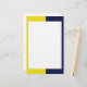 Écrivez des notes spéciales sur ce papier à lettres avec une bordure jaune et marine.
