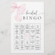Célébrez la future mariée avec ce jeu de BINGO élégant de baby shower mariage "Elle noue le nœud" avec un thème de ruban rose.