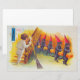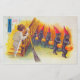 Ce design présente une image d'une carte postale datant du début du XXe siècle, célébrant Halloween. Il montre un garçon tenant une bougie qui est surpris de voir un défilé de chats noirs à l'aspect humain portant des casquettes de cônes rouges et portant des lanternes jack-o' fabriquées en citrouille.