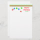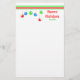 Papeterie pour les vacances avec mon design de jolies ornements de Noël rouges, bleus et verts accrochés à des rayures vertes et rouges.