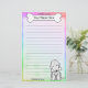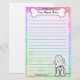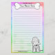 Fun Kawaii Bedlington Terrier papeterie avec un chien de dessin animé dans le coin inférieur droit. La partie supérieure peut être instantanément personnalisée avec votre nom à l'intérieur du gros os de chien. Les arrière - plans à la frontière et au papier sont un joli arc-en-ciel pastel.