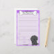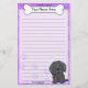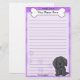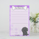 Fun Kawaii Papier à lettres de Terre-Neuve avec un nouveau dessin animé dans le coin inférieur droit. La partie supérieure peut être instantanément personnalisée avec votre nom à l'intérieur du gros os de chien. Les arrière - plans de bordure et de papier sont violets.