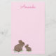 Quel mignon lapin, peint de façon réaliste avec un nez rose assis dans un morceau de trèfle sur cette papeterie rose. Personnalisez-le avec le modèle fourni avec votre nom ou phrase.