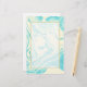 Papier de papeterie élégant et sophistiqué, motif en faux marbre élégant, aux couleurs tourbillonnantes bleu turquoise et crème. Un cadre semi-transparent avec une bordure dorée superposée.