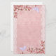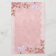 La papeterie présente des fleurs roses douces avec des papillons mauves sur un arrière - plan rose dentelle délicat.. Légèrement alignés.