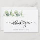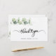 Budget Eucalyptus Lettered Mariage Merci Note Card vous pouvez facilement customiser avec vos détails. Le script "merci" avec un coeur d'amour est défini cependant, vous pouvez changer l'arrière - plan de la carte ainsi que le texte et les couleurs. Ajoutez également votre message personnalisé au verso.