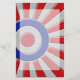 A Mod Target Roundel Asian Sunburst Design présenté ici sur une impression graphique de style fibre de carbone. Bon pour une réunion, un sport ou un cadeau avec un look industriel urbain automobile. Présentation