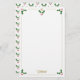 Personnalisez le papier à lettres de Noël élégant et festif dans le modèle avec votre initiale monogramme et votre nom sur le côté avant. Il est conçu avec des feuilles verts saints avec un contour doré, des baies rouges et une ligne simple créant une bordure. Le côté arrière du papier a un motif fait de la même illustration de houx et de baies.