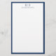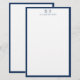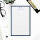 Créez votre propre bloc-notes personnalisé avec des initiales de monogramme en typographie élégante ainsi qu'un nom personnalisé et un design de bordure simple en couleur bleu marine.