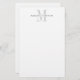 Cette papeterie présente un design épuré et minimaliste avec une grande lettre serif gris clair centrée sur le dessus. Le superposé est une ligne de texte plus petite dans une police sans-serif moderne, créant un look élégant et élégant. L'arrière - plan blanc et la disposition simple lui confèrent un aspect raffiné et professionnel.