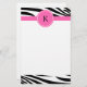 Modèle de zèbre noir et blanc monogrammé. Un bandeau rose chaud et un cercle rose chaud où vous pouvez mettre votre initiale.