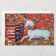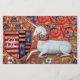 Ornement de Noël coloré avec élégante fleur de lys et motifs héraldiques, tourbillons floraux bleu, fleurs avec une licorne assise blanche, élaboration numérique d'une miniature médiévale ancienne.