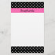Motif à pois noir et blanc. Pois blancs sur le noir et au milieu il y a un rectangle rose chaud où vous pouvez ajouter votre texte.