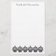 Papier à lettres personnalisées blanc avec une élégante bordure noire damassée en bas et espace pour votre nom ou autre texte en haut. Très classe et élégant.