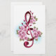 Pink treble clef with delicate, detailed pink Japanese cherry blossoms against white background painted over with light blue paint Blooming pink sakura.