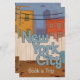 New York City "Réservez un voyage aujourd'hui" humoristique poster de voyage de dessin animé.
