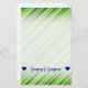 Ce design de papeterie est composé d'un motif de lignes ou de rayures colorées de différentes nuances de vert. Il comporte également un nom personnalisé près du fond, entre deux formes de coeur. [~Z0000113]