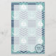 Un motif de carrés turquoise orageux, décoré d'un voilier et d'une ancre blancs, et de carrés bleu marine, accentués de chevrons et de vagues bleu pâle, est accentué par la couture blanche pour créer une atmosphère nautique classique. Customisez le monogramme dans le coquillage dans le coin inférieur droit avec votre initiale pour créer un papier à lettres qui est le vôtre.
