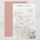 Joli papier à écrire avec des fleurs sauvages et des lignes. Les marguerites blanches constituent l'image de fond pour une note manuscrite. Un bouquet cueilli à la main décore le coin inférieur droit et un nom peut être ajouté en haut en écriture bleue. Le dos est d'un rose foncé uni.