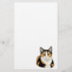 Design d'art original d'une chatte calico avec ses pieds cachés sous par l'illustratrice Carolyn McFann de Two Purring Cats Studio sur papeterie personnalisable pour amoureux de les chats.
