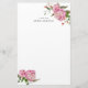 Cute personnalisée stationnaire avec votre nom avec l'aquarelle illustration de pivoines roses et de verdure.