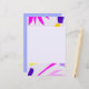 Les tiges et pétales en fuchsia, bleu et orange apparaissent aux bords de ce papier d'écriture. La partie centrale et l'inverse sont la lavande.