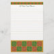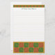 Papeterie de vacances sur mesure rouge et vert avec lettres de script vert et un motif de fleur de lis vintage restauré à partir de tuiles antiques sur un plateau et fond arrière - plan doré. Cette papeterie a des lignes dorées claires. Customisez-le pour supprimer des lignes, modifier des polices, des couleurs, etc.