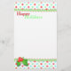 Papeterie de Noël colorée en blanc, avec un amusant en-tête et pied de motif de pois rouge, vert clair et turquoise, bordée de graphismes qui ressemblent à un rack de rick vert. Une branche de saint orne le bas gauche du papier et Joyeuses fêtes en rouge et vert, en haut. Customisez d'ajouter texte ce joli papier de lettre de vacances, ou écrire acheter tel quel et écrire à la main votre lettre de Noël.