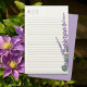 Papier à écritures recouvert de lavande et d'eucalyptus avec un modèle monogramme en haut. Jolie papeterie personnalisée pour des notes manuscrites et des lettres avec une feuille de lavande décorant le bord. Reverse est couleur lavande solide.