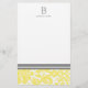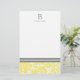Joli et élégant canari jaune, gris fusain et blanc chic vintage damassé à motif personnalisé monogrammed papeterie pour mariée et mariée. Ajoutez votre nom ou votre initiale pour créer un papier à lettres mariage personnalisé unique.