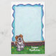 Papier à lettres personnalisées pour chien mignon St Bernard avec notre art original d'un chien bronzé et blanc de notre ligne Animal Parade avec un arrière - plan coloré à texture bleue peint par Traci Van Wagoner (www.tracivanwagoner.com). Avec un champ blanc transparent pour écrire votre message, ce papier à lettres pour chien est parfait pour les animaux et les amoureux de les chiens de tous âges. Découvrez notre magasin et récupérez tous nos articles uniques dans notre ensemble de papeterie de chien St. Bernard.