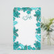 Papier à papier à lettres blanc turquoise et aqua hibiscus garden bordé avec monogramme en haut. Des fleurs tropicales et de longs feuilles, dans les tons bleu aqua et turquoises, entourent ce papier de 5 x 8 pouces. Trois initiales se trouvent en haut dans le script turquoise, ou supprimez les lettres pour acheter du papier vierge. Le design est imprimé sur un seul côté et le papier de lin est affiché - mais peut être changé.