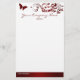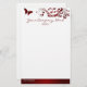 L'en-tête de lettre avec le papillon et les fleurs rouges élégants ornemente prêt à aller et customiser de pair avec votre propre information.