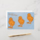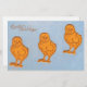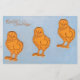 Une carte postale vintage / antique Happy Pâques avec trois poussins en feutre jaune flou, le tout en une rangée. Arrière - plan en bleu. Joyeux Pâques !