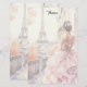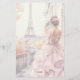 Femme debout près d'une fenêtre regardant la Tour Eiffel. Nom personnalisable.