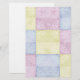 motif de style patchwork coloré et doux, couleur pastel, aux carrés rose pâle, bleu et vert avec dentelle fleurie comme motif floral et un look défraîchi.
