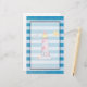 Papeterie avec thème nautique. Conçu avec un phare rayé rouge et un ballon de plage, avec un soleil souriant et une mouette volante au loin. Un motif rayé bleu dans l'arrière - plan. Superposition semi-transparente placée sur le dessus pour une écriture lisible.