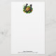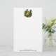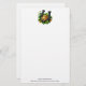Papier à lettres avec une image sur le thème de la Saint Patrick. Un fer à cheval noir et or assis dans un lit de trèfle vert avec des pièces d'or brillantes.