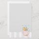 Papier à lettres avec une illustration fantaisiste. Une théière rose avec un petit coeur rose au centre et un bouquet de fleurs à l'intérieur. De délicieux papillons de couleur pastel floutent autour.