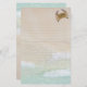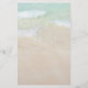 Papier à écrire avec arrière - plan de sable de plage et image de crabe bleu au sommet. Jolie papeterie personnelle ou de bureau sur le thème de la plage pour écrire des notes personnelles à quiconque. Les deux côtés sont décorés de sable et d'image de surf contenant de l'eau tropicale bleu turquoise. Les vagues montent du bas à l'avant et descendent du haut à l'arrière. Les lignes gris clair sont sur le devant du papier seulement.